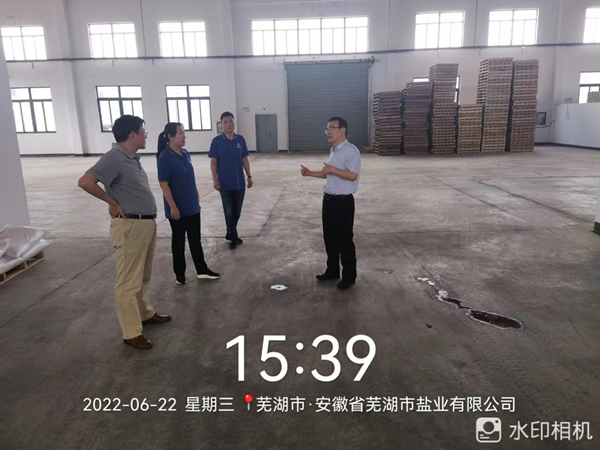2022年6月22日,集團公司黨委委員、副總經理,鹽業發展公司黨委書記、董事長王奇赴蕪湖市鹽業公司檢查安全生產工作。